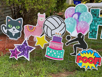 The party starts at the curb! Supercute Yard Cards celebration signs take "YAY" to the next level. Imagine our GIANT signs magically appearing on the front lawn personalized with colors and graphics specifically selected for the recipient! Order online then plan your surprise.
